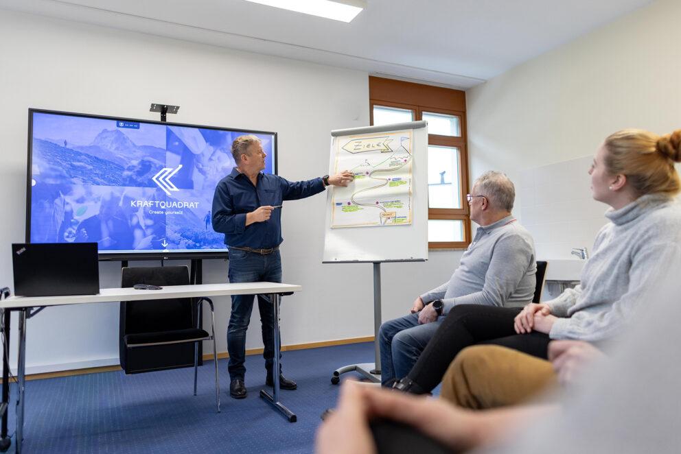 Der Berg zeigt uns unsere Grenzen – und unsere Möglichkeiten. Mein Weg. Schule & Ausbildung: Matura im Erzbischöflichen Privatgymnasium Borromäum. Abschluss der Theresianischen Militärakademie in Wiener Neustadt Führung & Verantwortung: 11 Jahre Berufsoffizier, Ausbilder in der Gebirgskampfschule Saalfelden, später 15 Jahre Bürgermeister. Wirtschaft & Organisation: Gebietsleiter bei der VIG, Projektmanagement und Behördenverfahren. Beratung & Begleitung: Seit über 14 Jahren selbstständig als Mediator, Coach und Organisationsberater. Natur & Berge: 26 Jahre Heeresbergführer und Salzburger Bergwanderführer Meine Ausbildungen. Studium Kommunikation & Management (Donauuniversität Krems) Studium Beratungswissenschaften mit Schwerpunkt Organisationsberatung, Coaching und Supervision (ARGE Bildungsmanagement – Sigmund-Freud-Universität) Theresianische Militärakademie Wiener Neustadt Diplomausbildung Mediation & Konfliktmanagement Ausbildung zum spirituellen Berater & Systemaufsteller (AFP Akademie Heidelberg) Staatlich geprüfter Lehrwart, Heeresbergführer und Salzburger Bergwanderführer Verschiedene Kinesiologische Ausbildungen (insgesamt 580 Std) Meine Haltung. Meine Haltung ist geprägt von Respekt, Klarheit und echtem Interesse am Menschen. Mein Weg war selten gerade, aber immer getragen von Verantwortung – für Teams, für Entscheidungen, für Gemeinschaften. Ich begleite Menschen so, dass sie Orientierung finden, ohne sich verbiegen zu müssen. Was mich leitet: Interesse statt Wertung – Menschen sehen, nicht beurteilen Empathie statt Härte – Klar sein, ohne zu verletzen Fragen statt Vorwürfe – Raum öffnen, statt Druck erzeugen Sachlichkeit statt Lautstärke – Ruhe als Führungsqualität Führung bedeutet für mich, Menschen zu stärken – nicht zu dominieren. So entsteht Vertrauen, Entwicklung und echte Zusammenarbeit. Mein Ansatz verbindet Agilität mit Erdung. Veränderung braucht Beweglichkeit, Führung braucht Stabilität. Ich arbeite dort, wo beides zusammenkommt: in der Analyse klar, im Prozess offen, im Umgang menschlich. Was mir wichtig ist: Beweglichkeit im Denken Klarheit im Entscheiden Ruhe im Handeln Tiefe im Gespräch Die Deutungshoheit behalten – über das, was geschieht, und über das, was es mit einem macht So entstehen Entscheidungen, die nicht nur funktionieren, sondern sich richtig anfühlen – innen wie außen. Das Kraftquadrat Angebote Referenzen & Erfahrungen